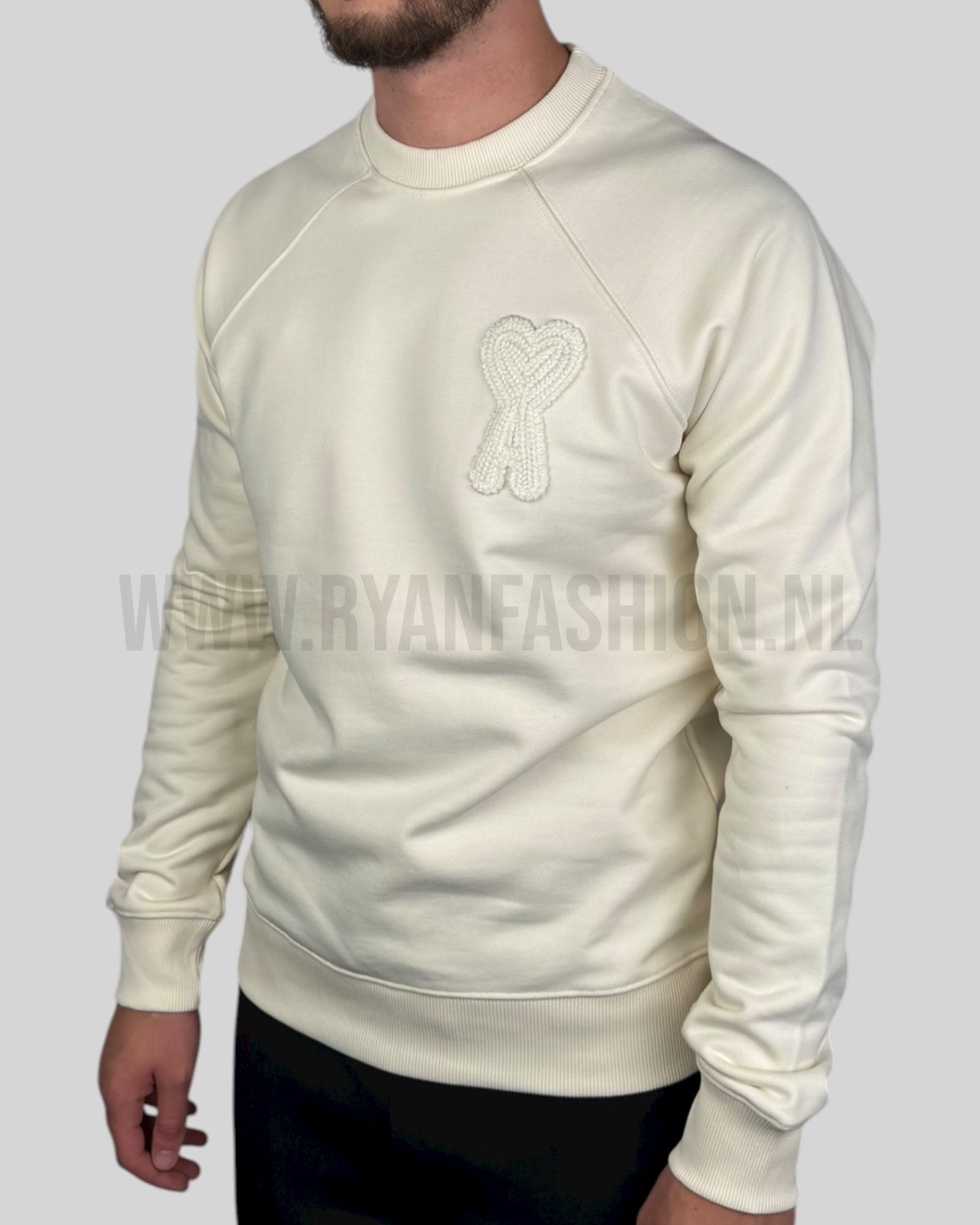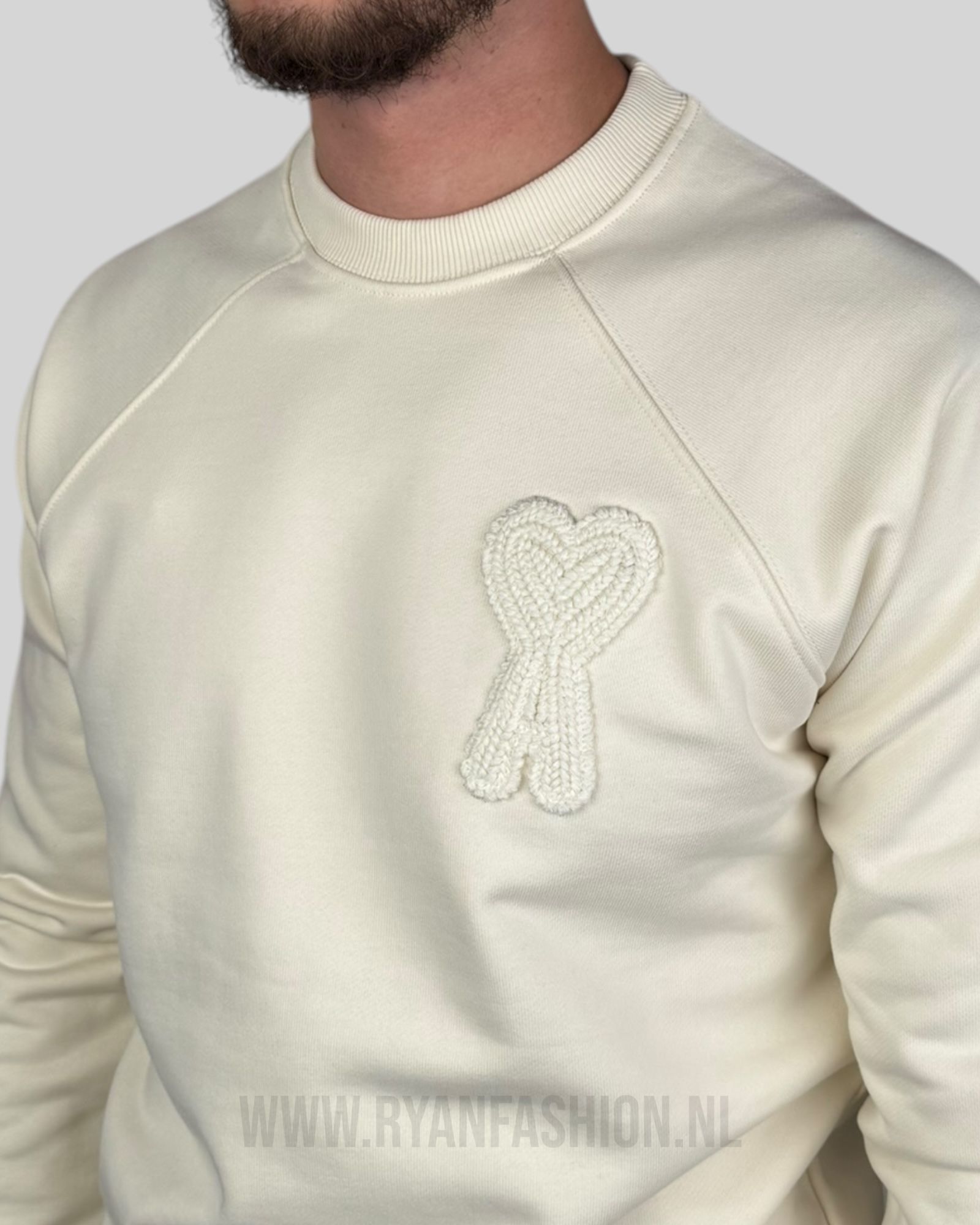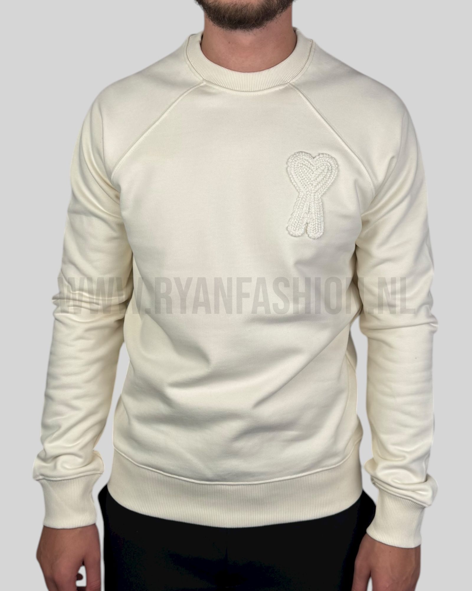 Ami Paris Embroidered Logo Sweater Ecru