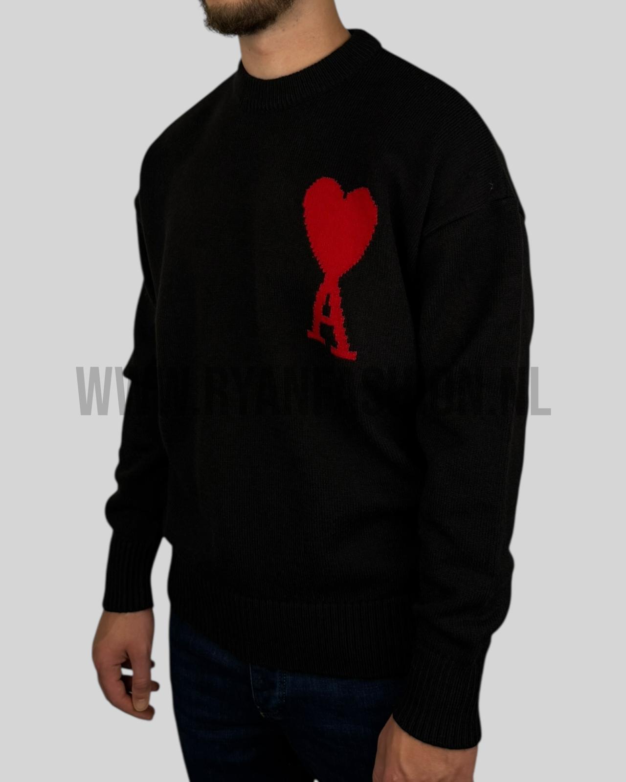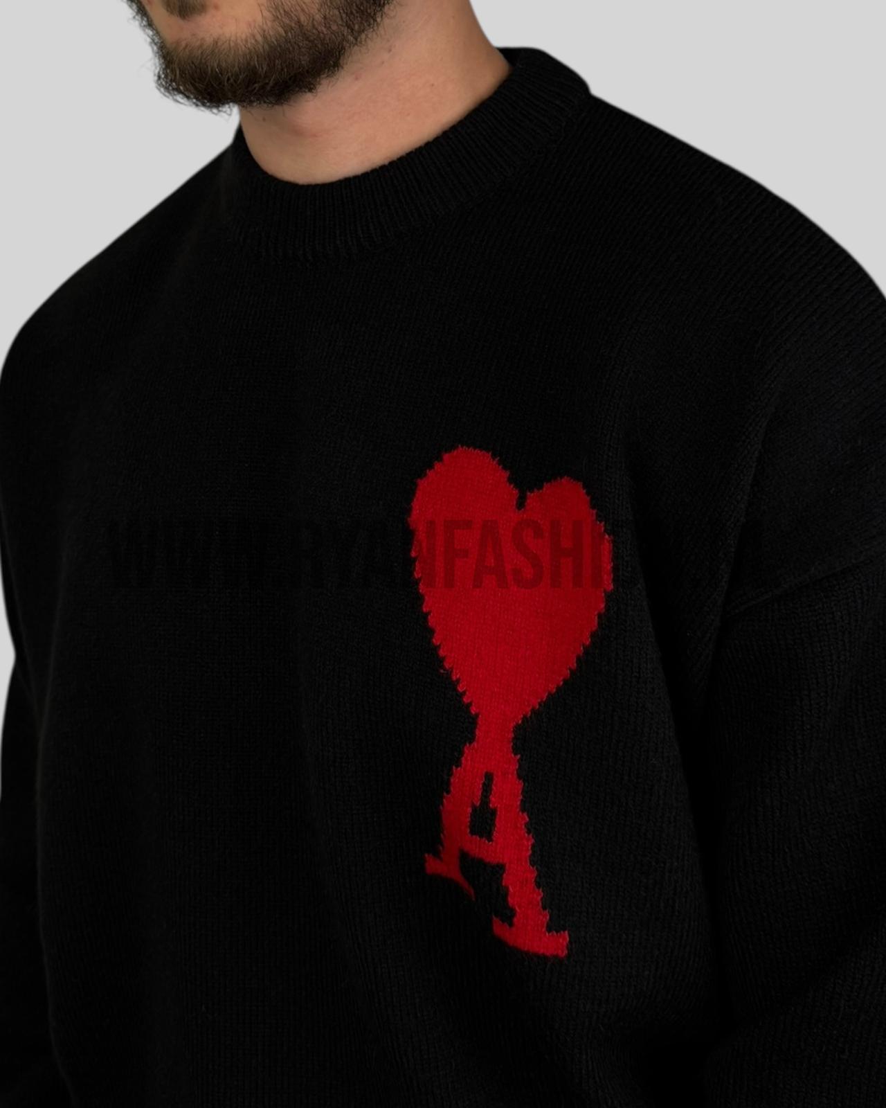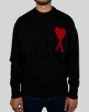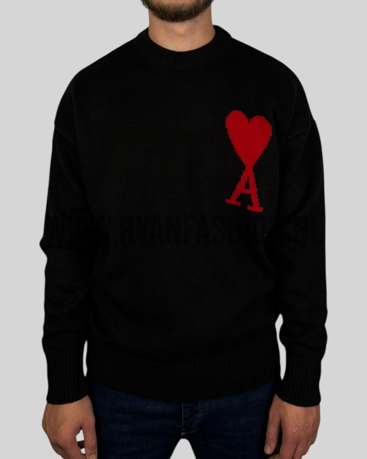 Ami Paris Knitted Wool Sweater Black Red