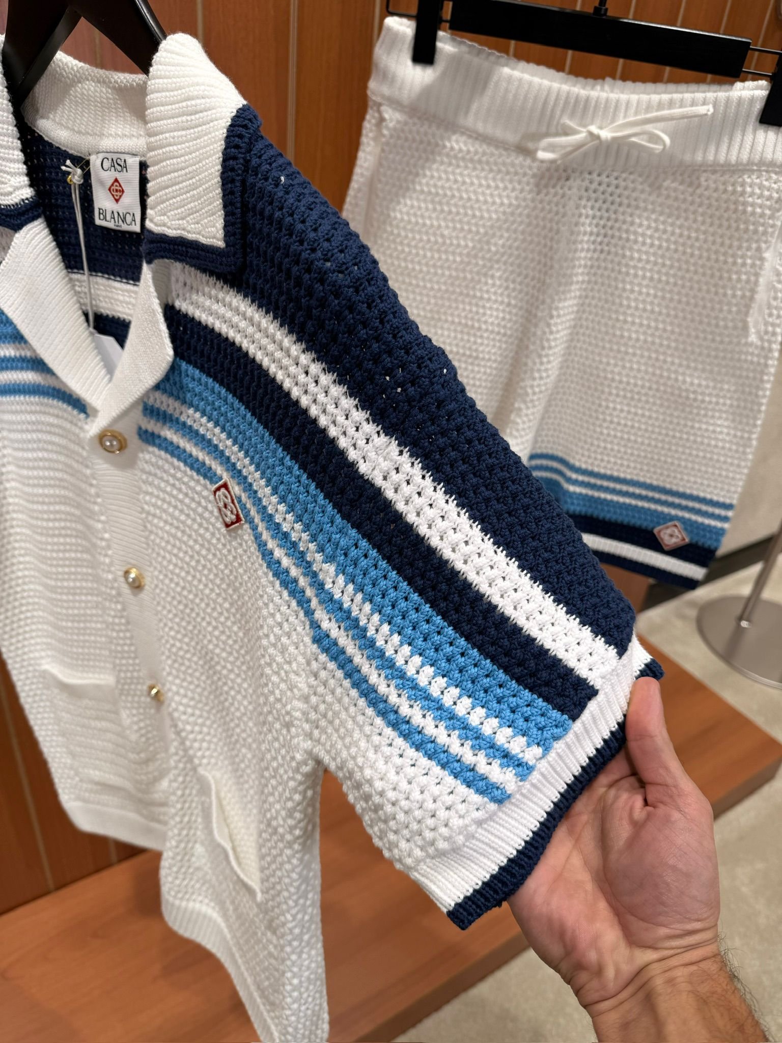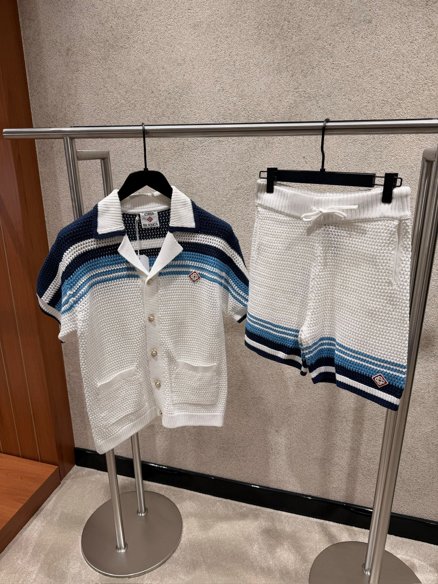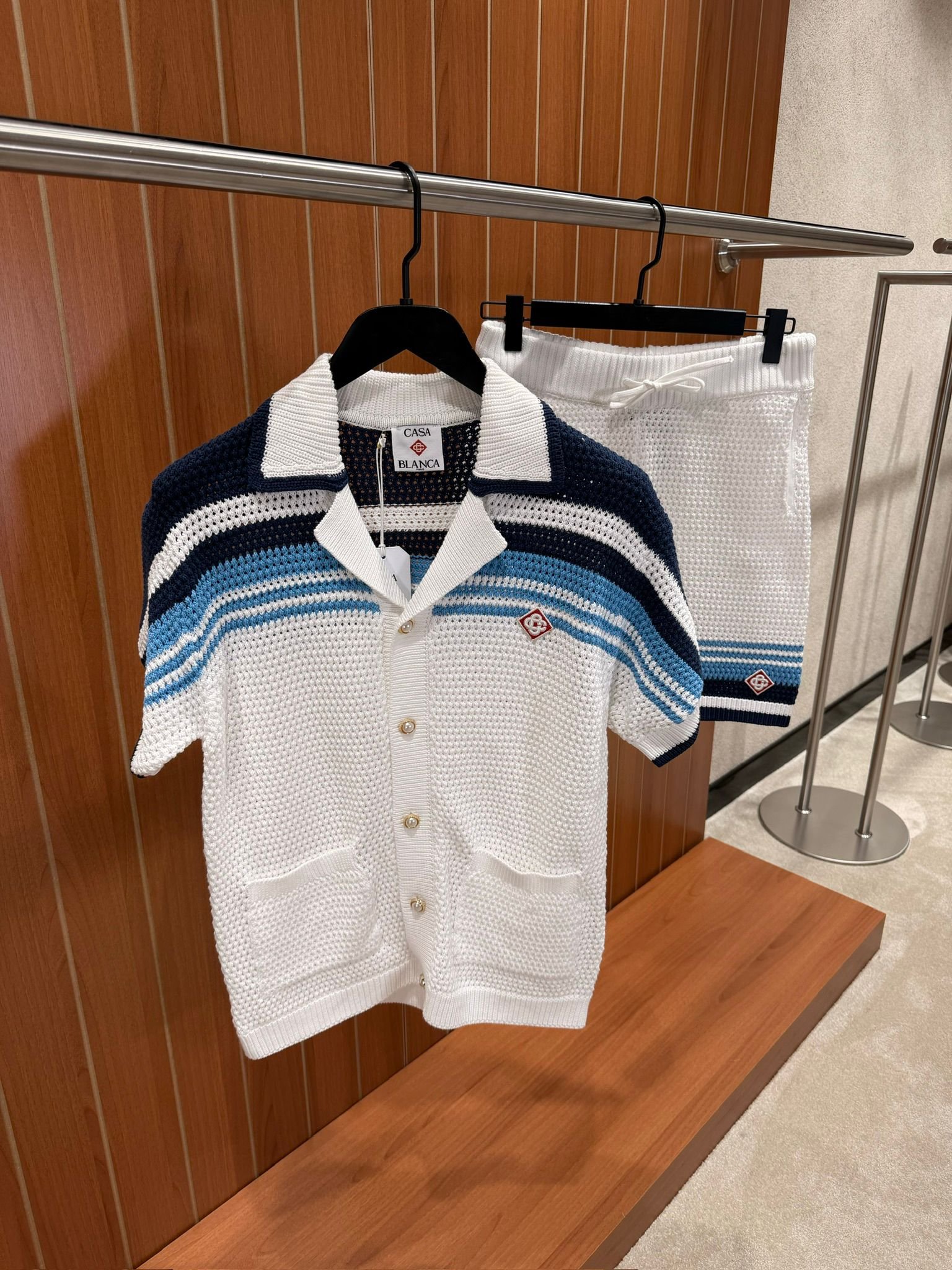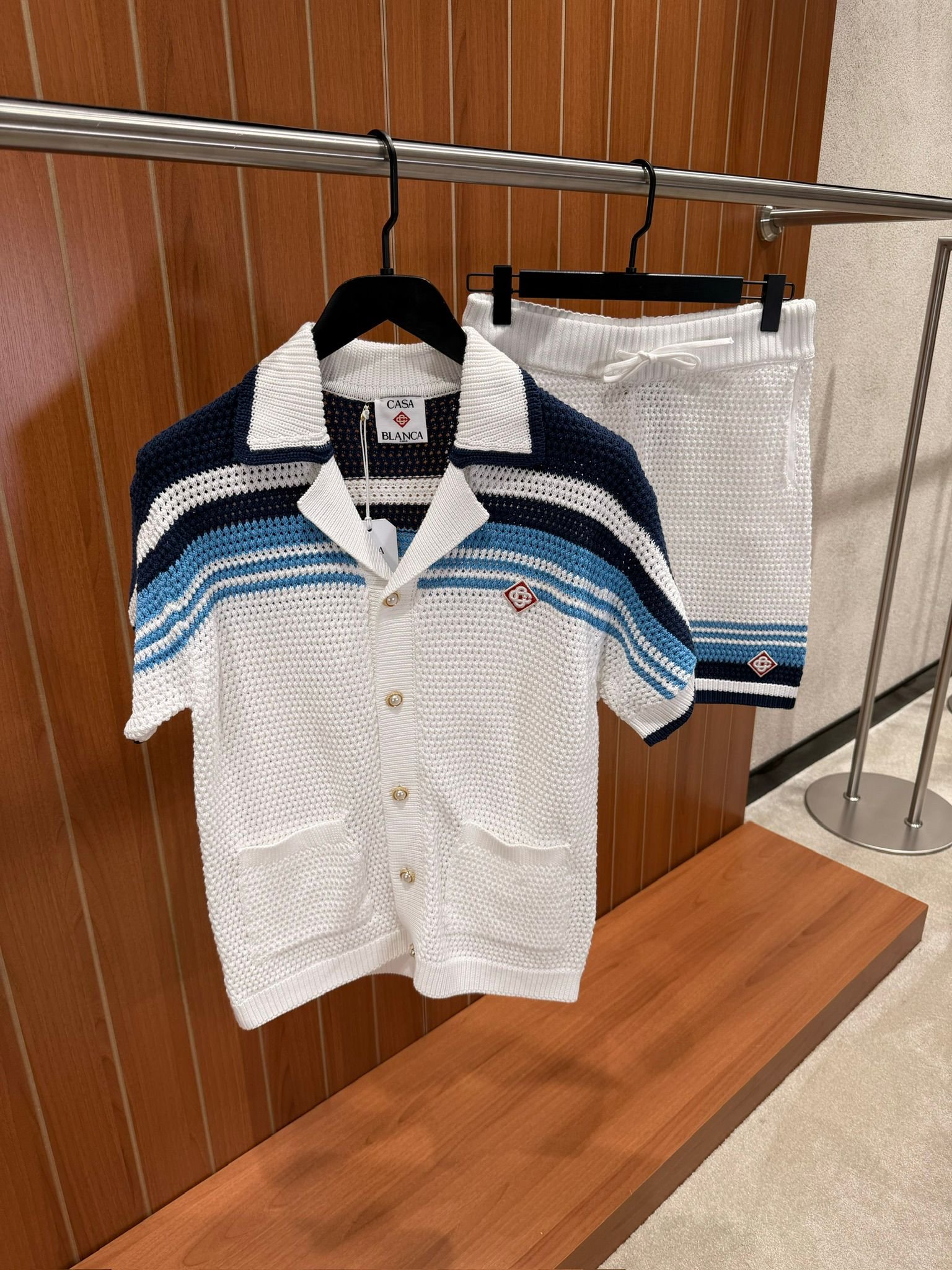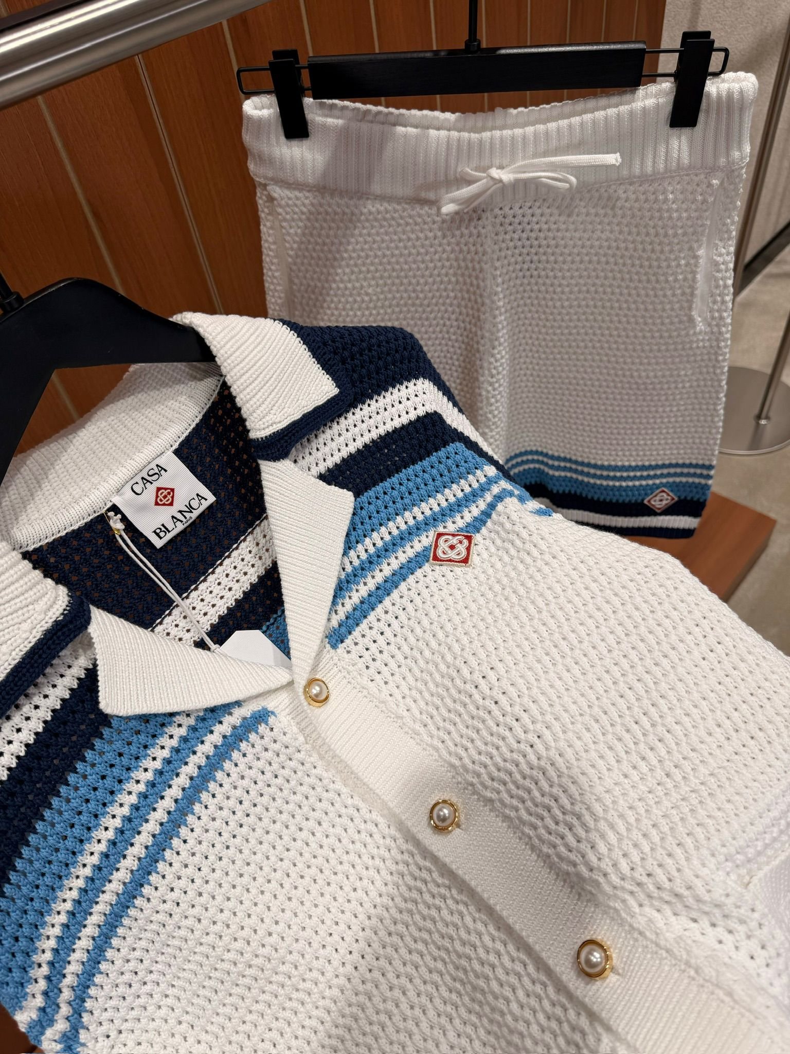 Casablanca Tennis Cotton Crochet Short Set White Blue